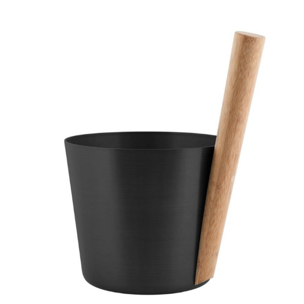 Rento aluminium sauna emmer met staafgreep uit thermisch behandeld bamboe in fraai en strak design.