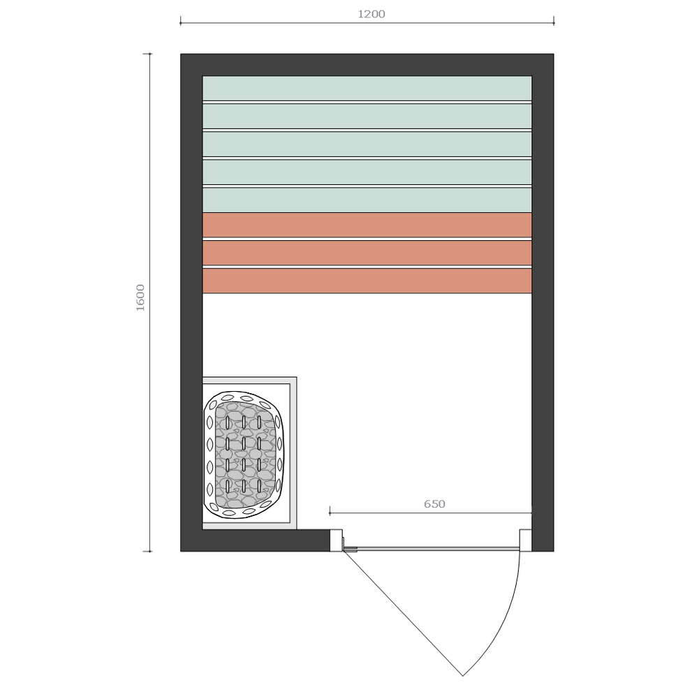 Bijvoorbeeld: Je ruimte is 160 cm breed en 120 cm diep. Kies dan het zelfbouwpakket "Sauna Zelfbouwpakket 160x120 cm".