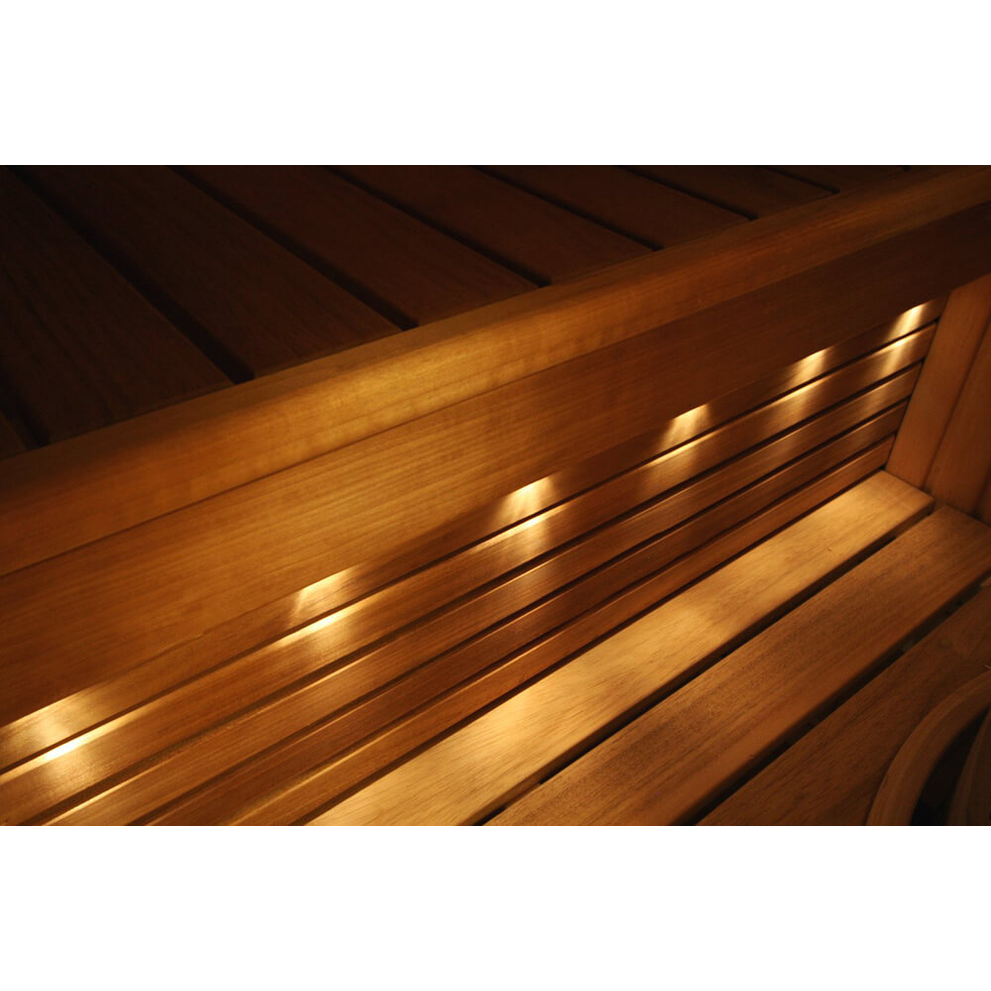 Bij ons heb je de keuze uit verschillende lichtpakketten. Voor een klassieke Finse sauna-ervaring kies je voor het standaard lichtpakket met bijbehorend lampscherm. Voor een veiligere optie of een groter lampscherm kun je kiezen voor de Bulley set. Voor een modernere uitstraling kun je jouw sauna verlichten met de backlight van een witte of gekleurde ledverlichting-set.
