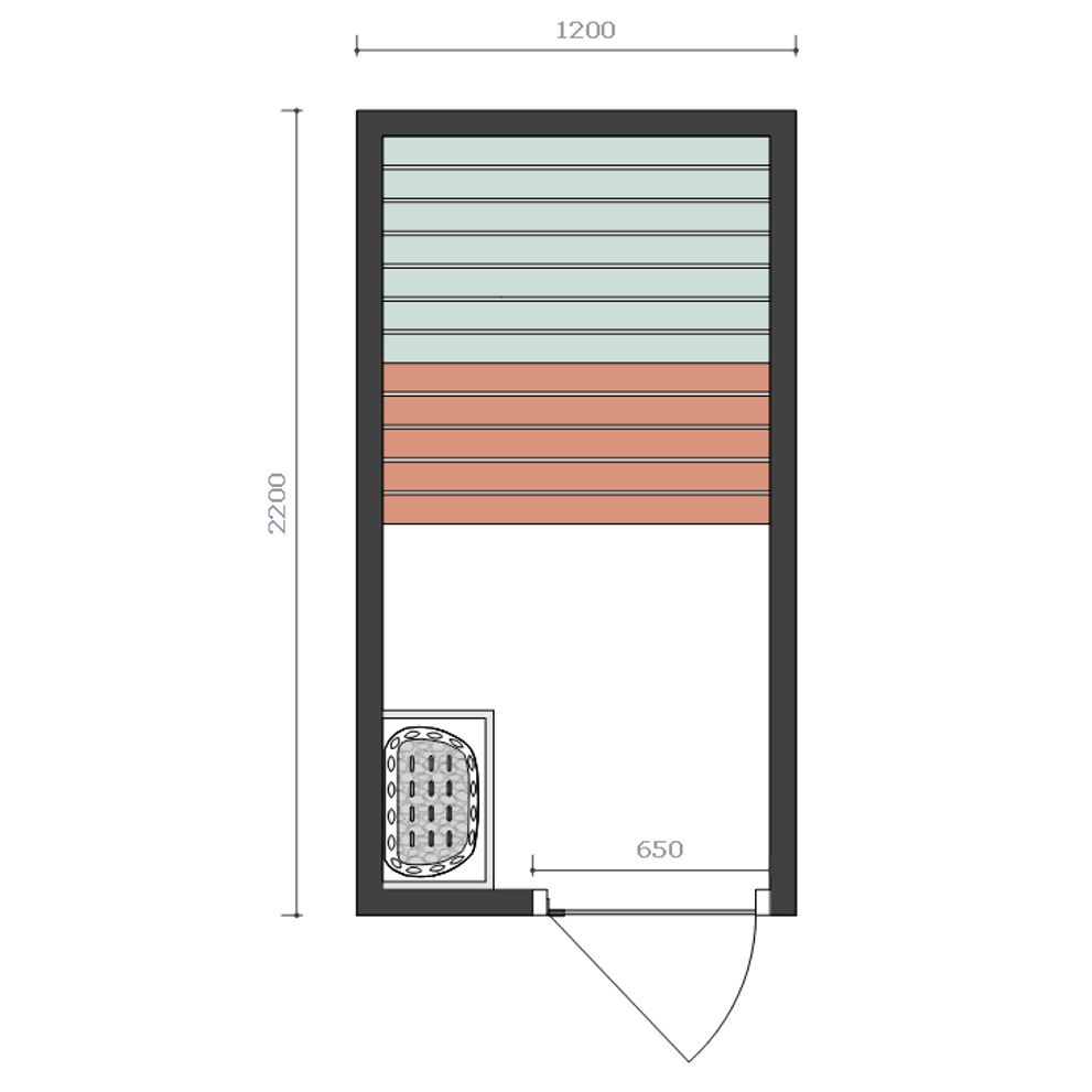 Bijvoorbeeld: Je ruimte is 160 cm breed en 120 cm diep. Kies dan het zelfbouwpakket "Sauna Zelfbouwpakket 160x120 cm".