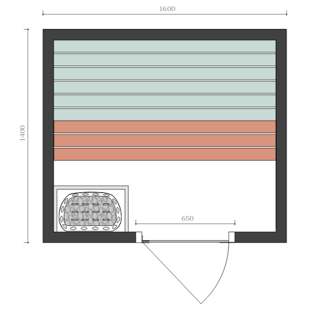 Bijvoorbeeld: Je ruimte is 160 cm breed en 120 cm diep. Kies dan het zelfbouwpakket "Sauna Zelfbouwpakket 160x120 cm".