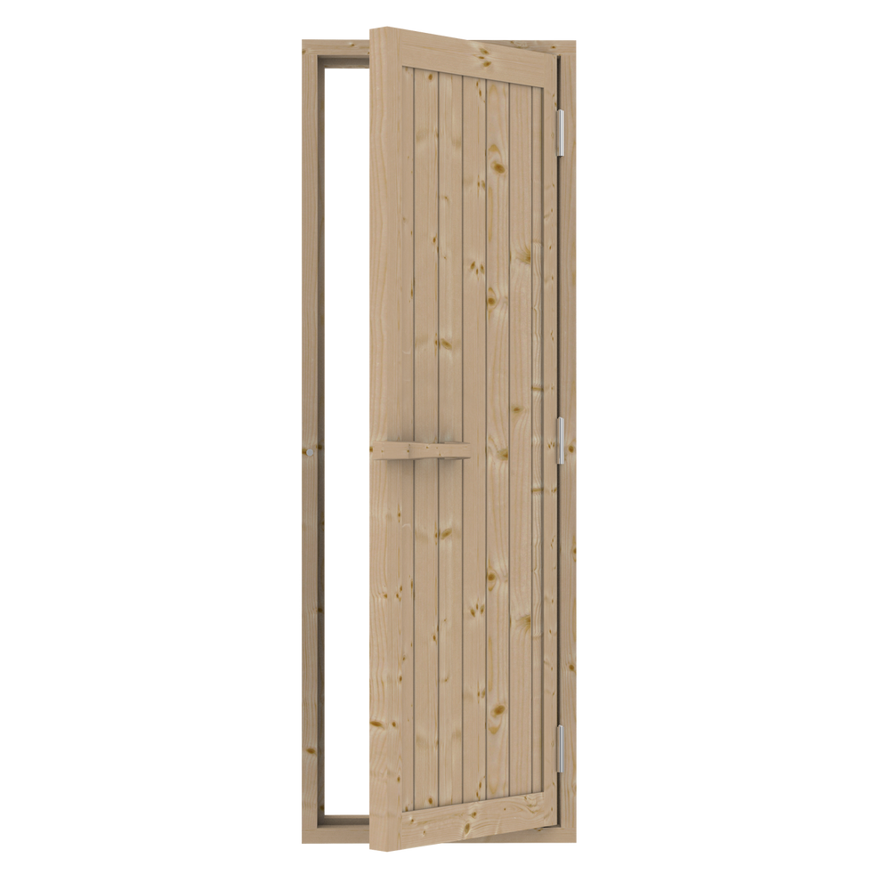 De deur is voorzien van een omkeerbare draairichting, waardoor u de deur zowel links- als rechtsdraaiend kunt installeren, afhankelijk van de indeling van uw sauna. Dit biedt extra flexibiliteit bij de plaatsing van de deur. De deur heeft de volgende afmetingen: