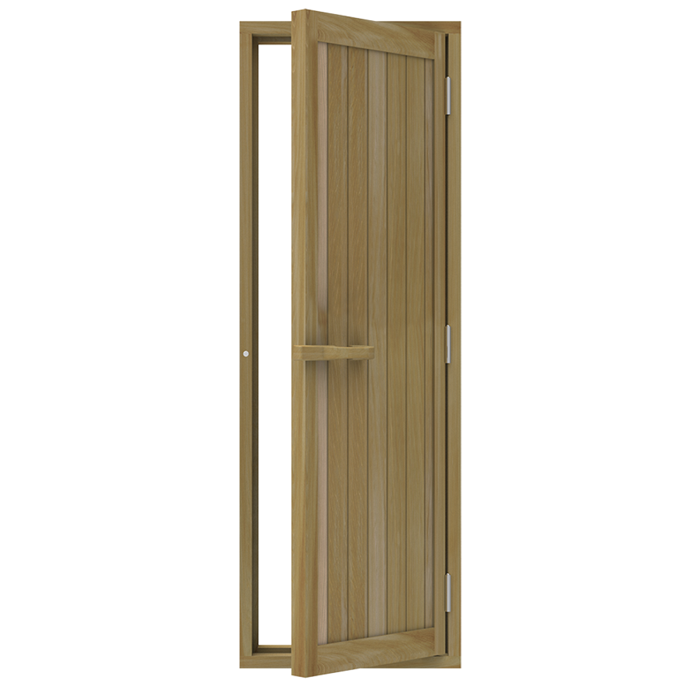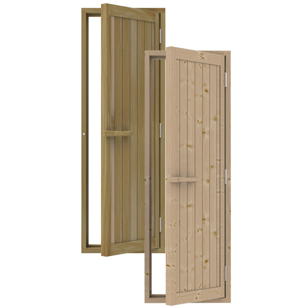 De Sawo Houten Saunadeur is een robuuste en stijlvolle keuze voor uw sauna, die de warmte en natuurlijke uitstraling van hout naar voren brengt. Het stevige houten kozijn van Spar of Ceder draagt bij aan de authentieke sauna-ervaring, met het natuurlijke aroma van het hout dat uw sauna nog aangenamer maakt.